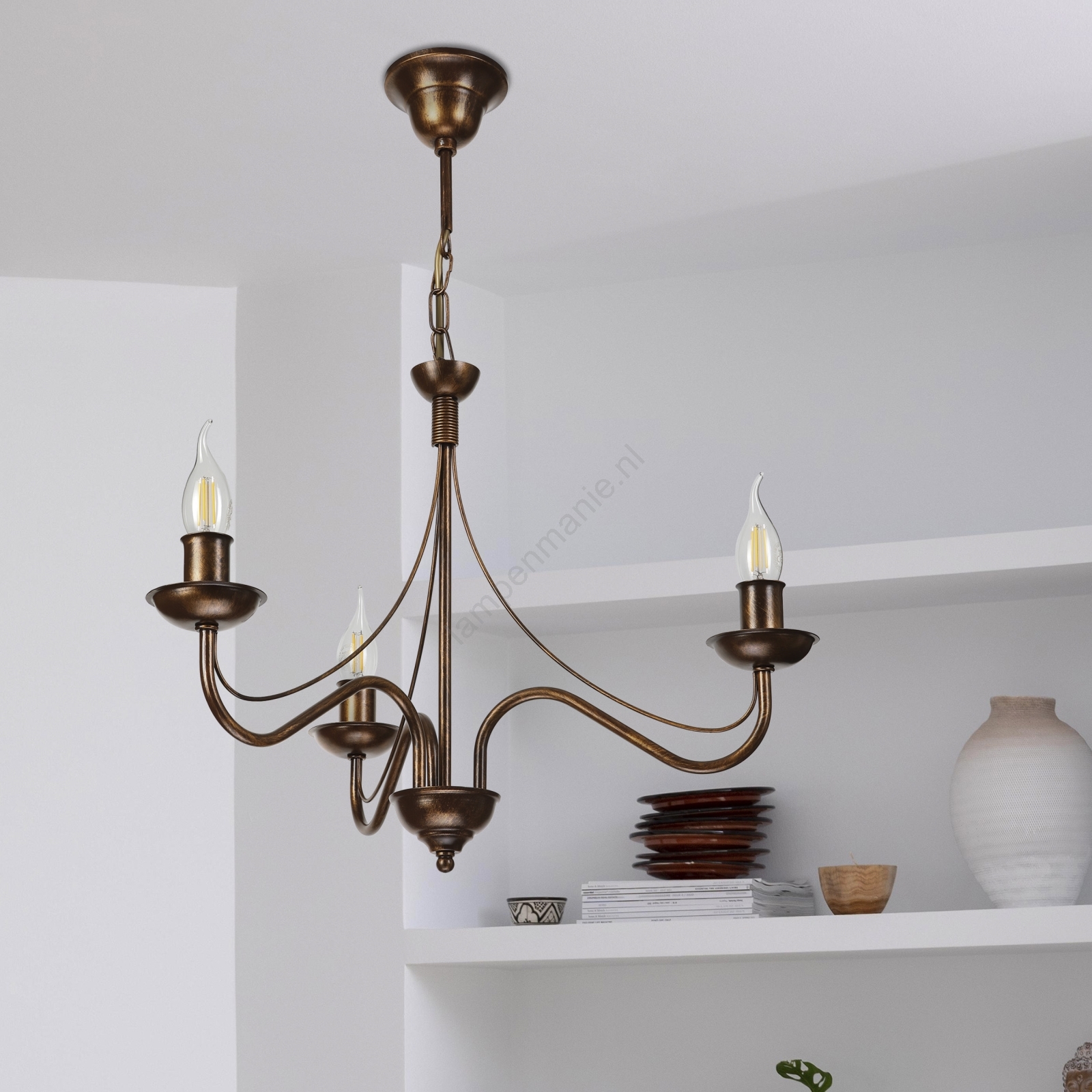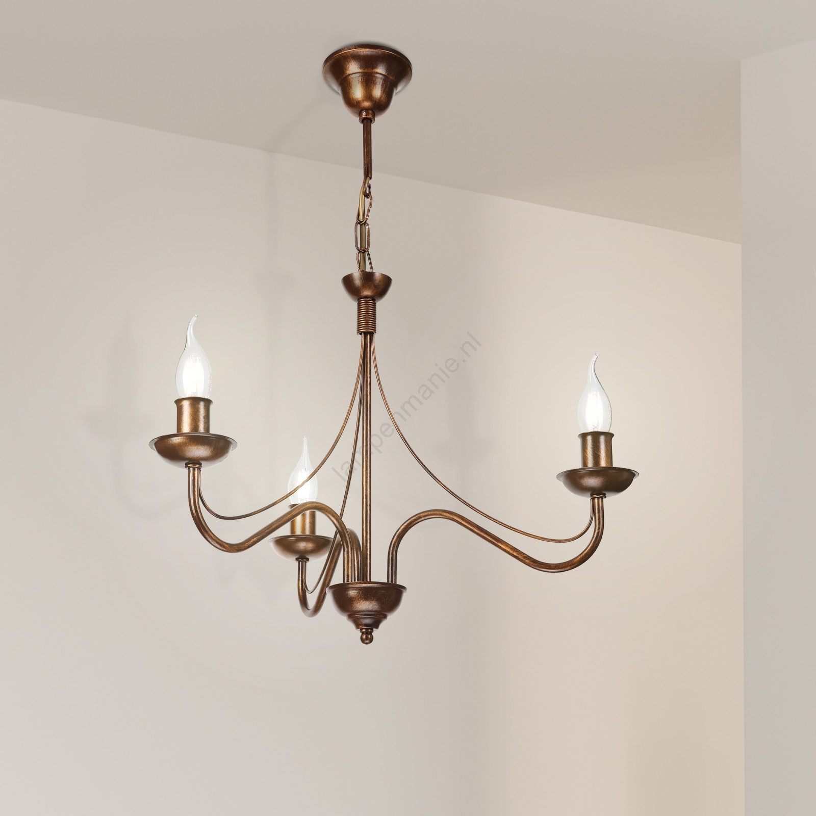 Kroonluchter aan ketting ANTON 3xE14/15W/230V bronskleurig kenmerkt een mooi en functioneel ontwerp.  Voor het licht is een lamp met E14 fitting geschikt. Hier kunt u andere lampen tegen voordelige prijzen kopen. U heeft een interessante aanwinst voor uw woning.