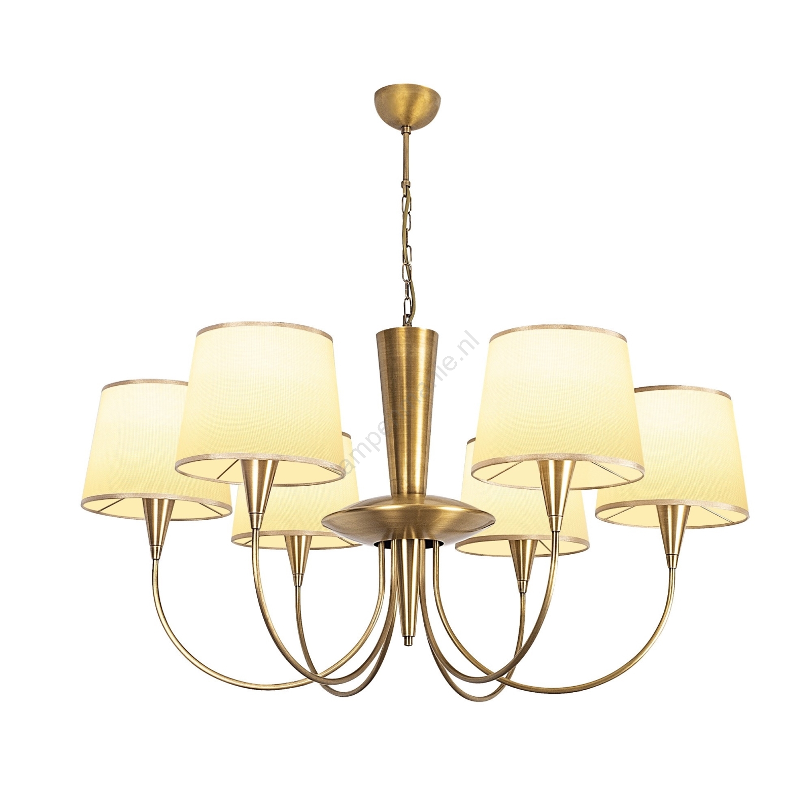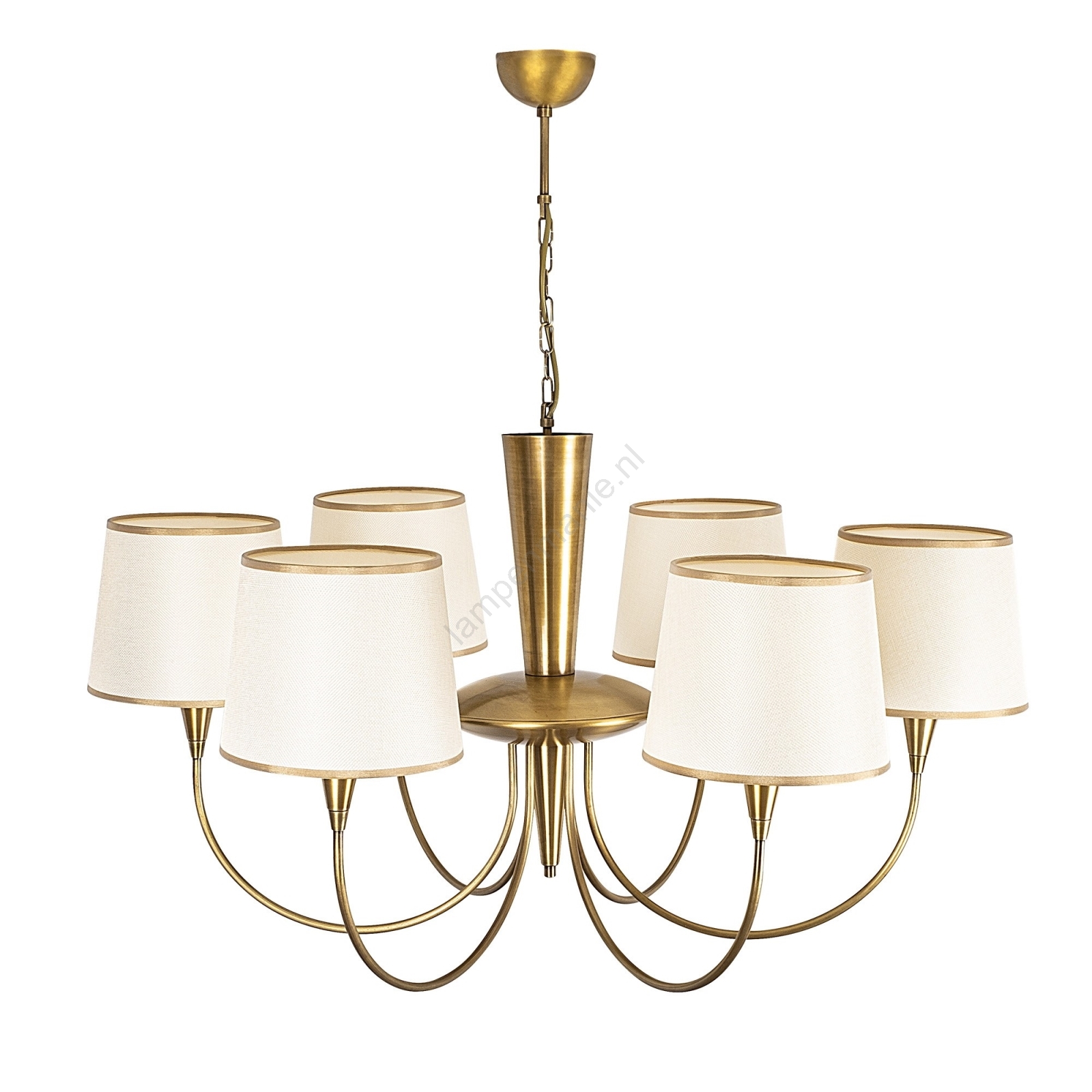Kroonluchter aan ketting PARDO 6xE27/40W/230V goud/crème kenmerkt een mooi en functioneel ontwerp.  Voor het licht is een lamp met E27 fitting geschikt. Hier kunt u andere lampen tegen voordelige prijzen kopen. U heeft een interessante aanwinst voor uw woning.