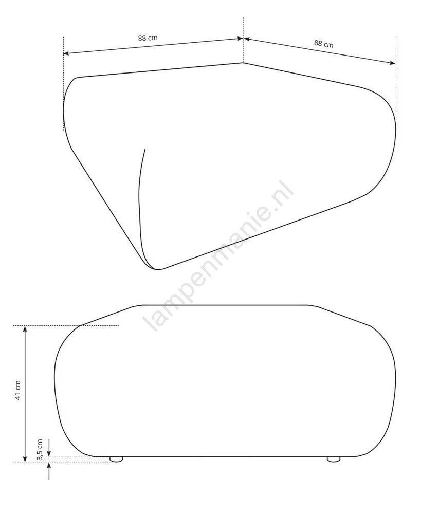 • Doos nr. 1: 90 x 90 x 44 cm (21 kg).