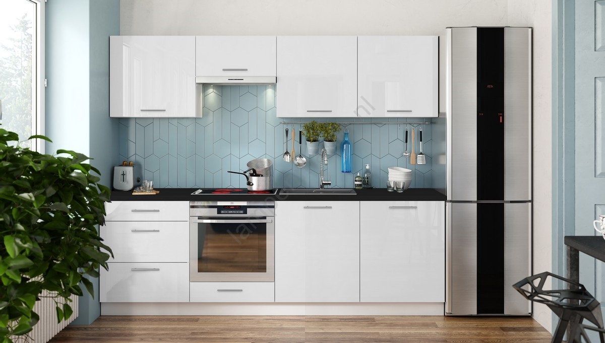 • Keukenblok CELESTE 240 cm hoogglans wit