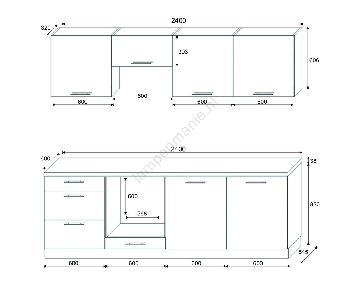 • Deindeling van de kasten is modulair, u kunt de keuken naar uw eigen wensen aanpassen.