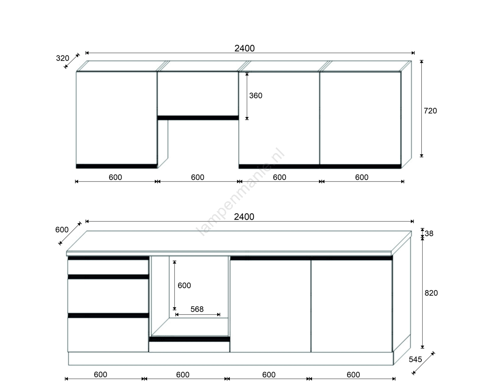 • De indeling van de kasten is modulair, u kunt de keuken naar eigen wens samenstellen.