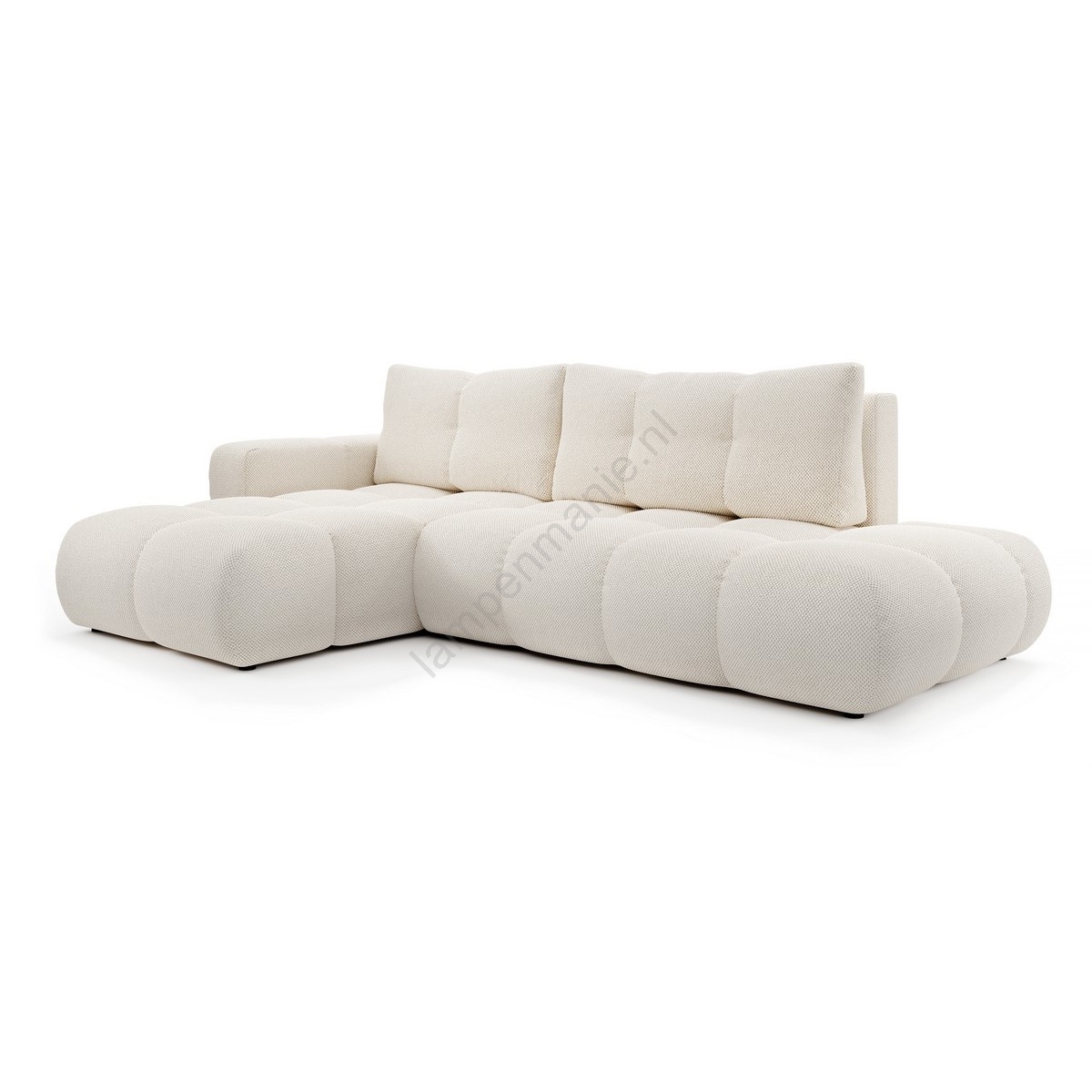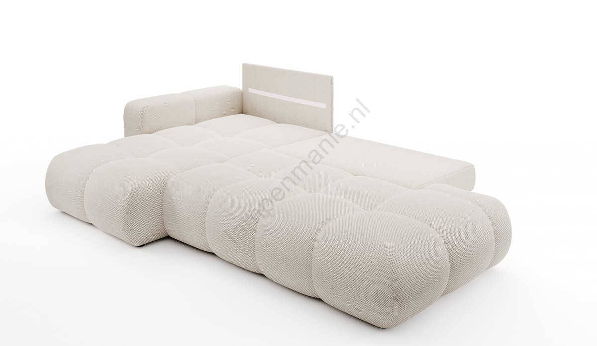 • ALMADA L-vormige uitklapbare gestoffeerde hoekbank met opbergruimte, links, licht beige