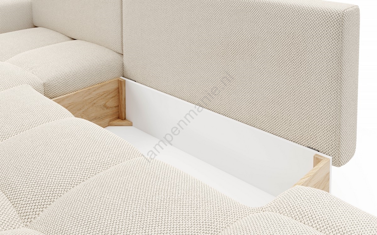 • De bank beschikt over een ruime opbergruimte voor het opbergen van beddengoed en andere seizoensspullen.