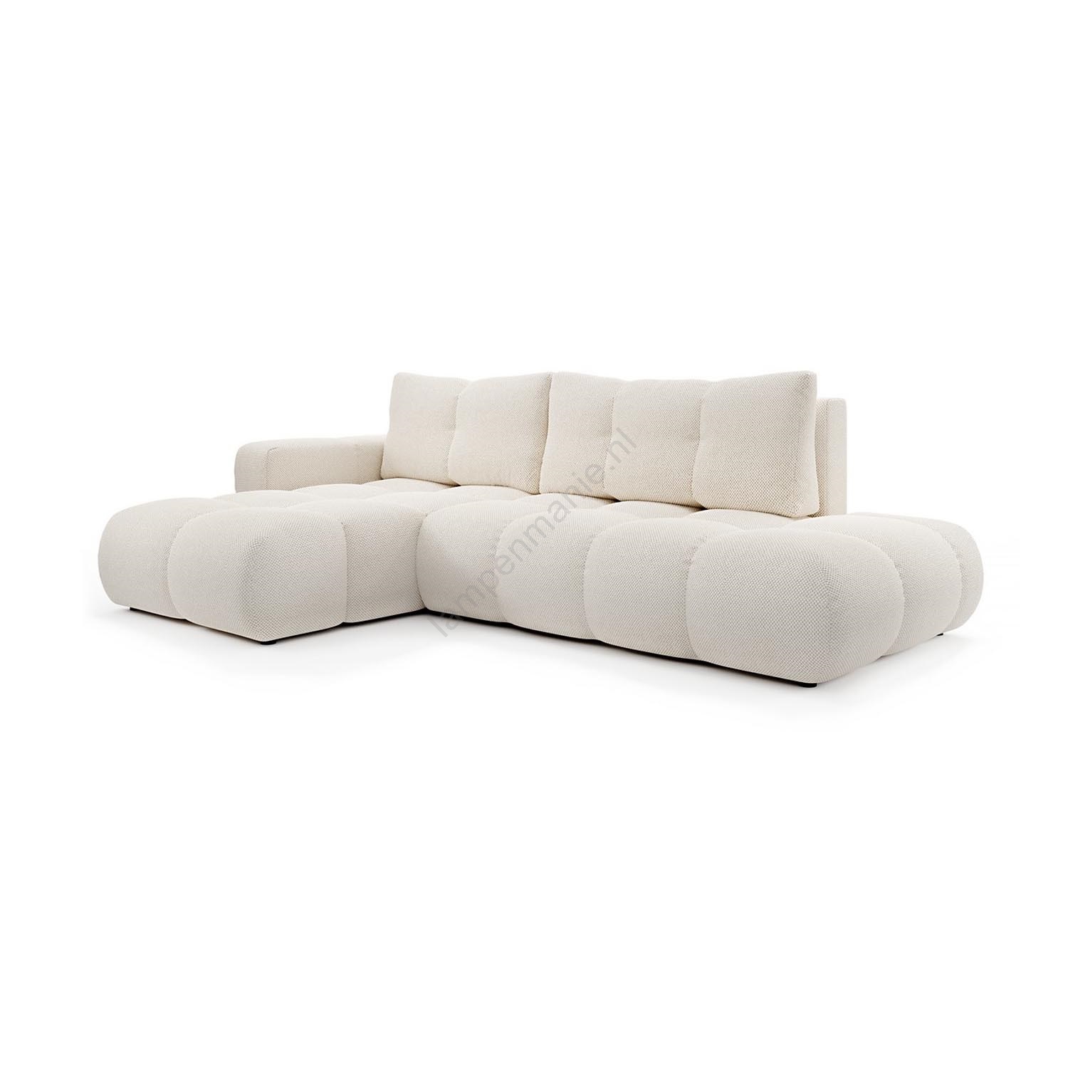 • ALMADA L-vormige uitklapbare gestoffeerde hoekbank met bergruimte, links, lichtbeige