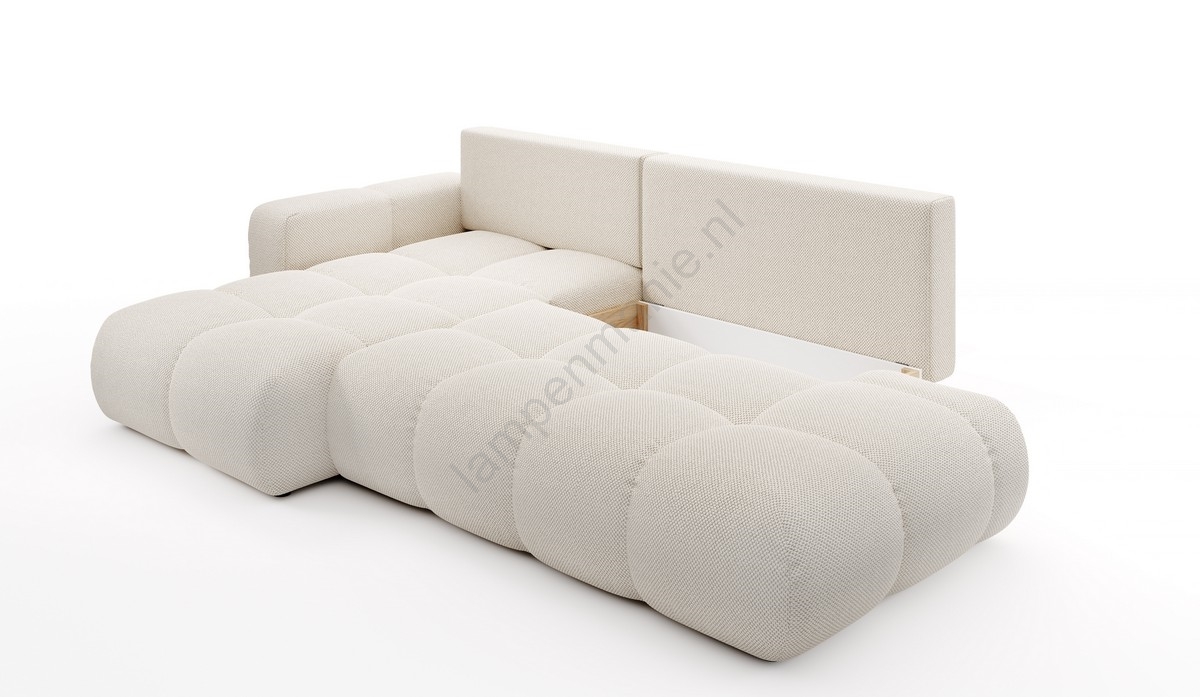 ALMADA L-shaped upholstered hoek sofa bed met storage, links-hand, licht beige