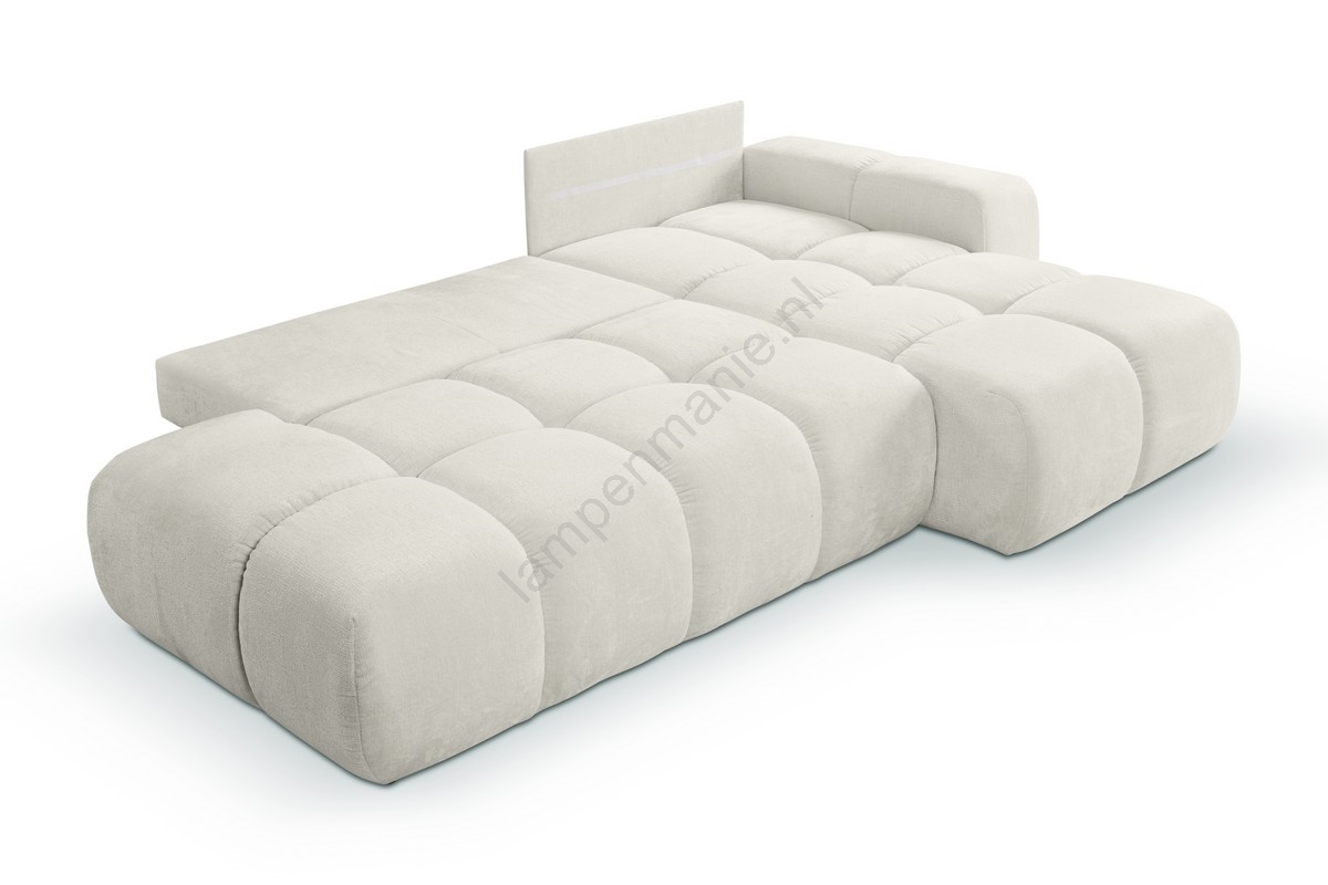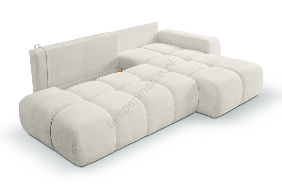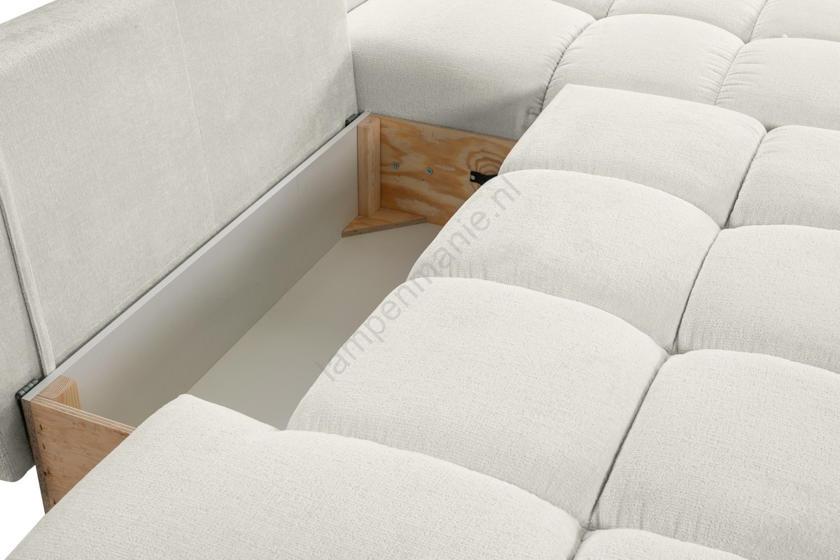 • ALMADA L-vormige uitklapbare gestoffeerde hoekbank met bergruimte, links, lichtbeige
