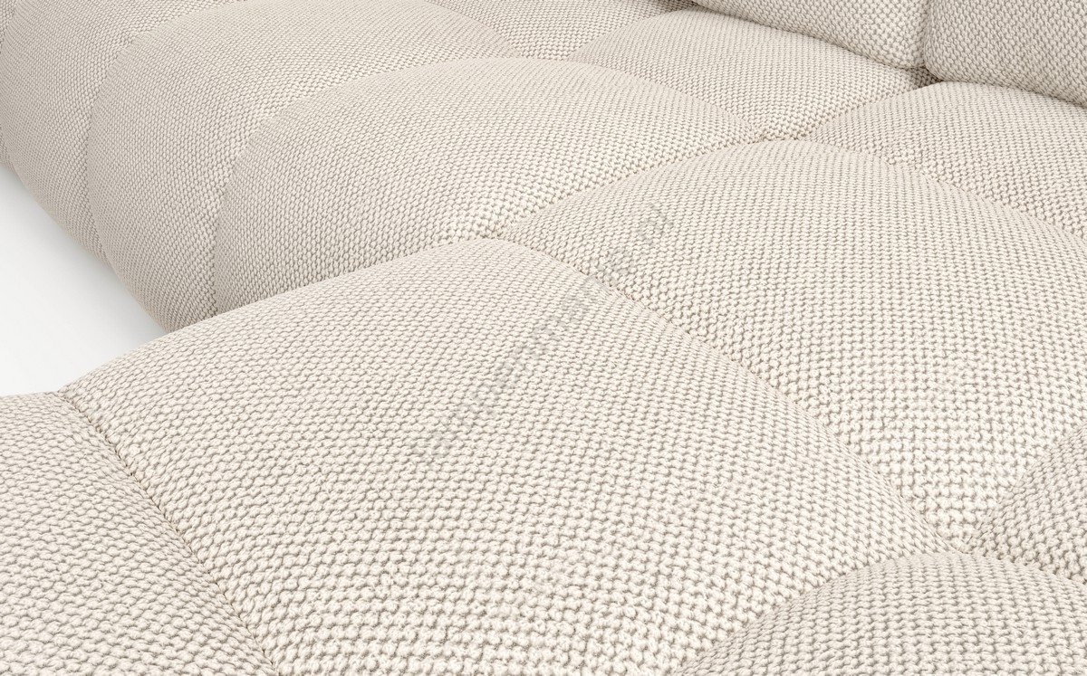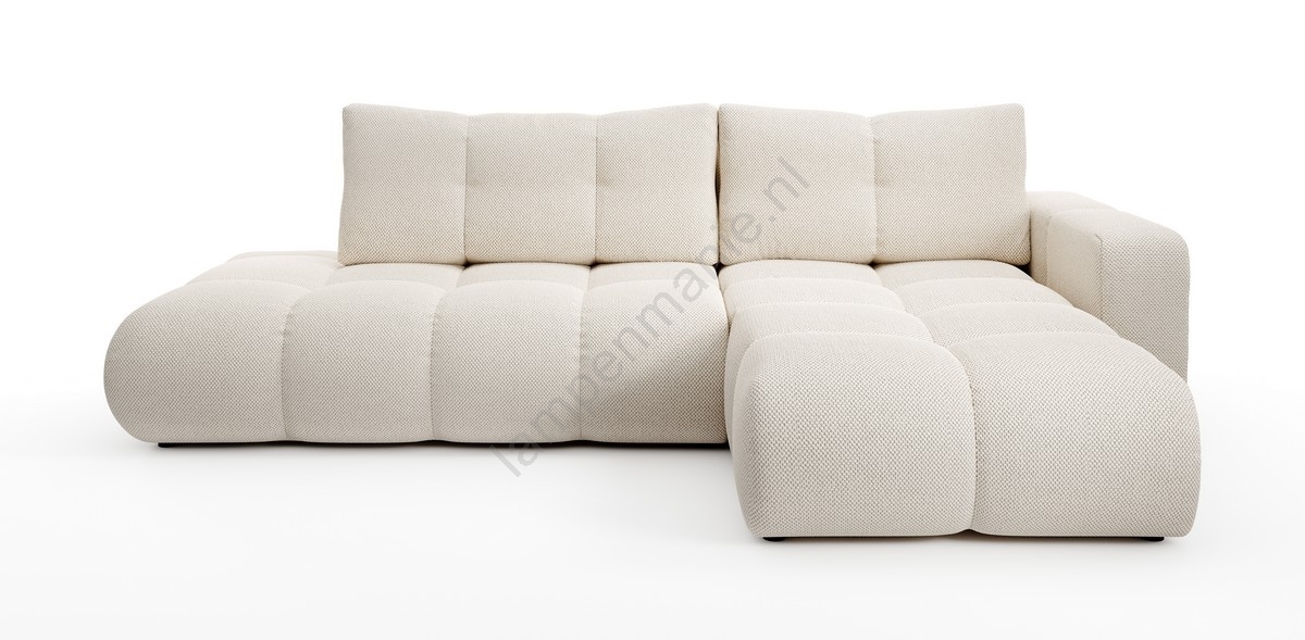 • ALMADA L-vormige uitklapbare gestoffeerde hoekbank met bergruimte, links, lichtbeige