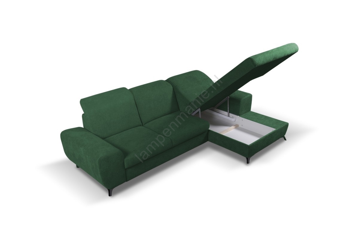 • Uitklapbare gestoffeerde hoekbank met opbergruimte in L-vorm ALTA, rechts, groen