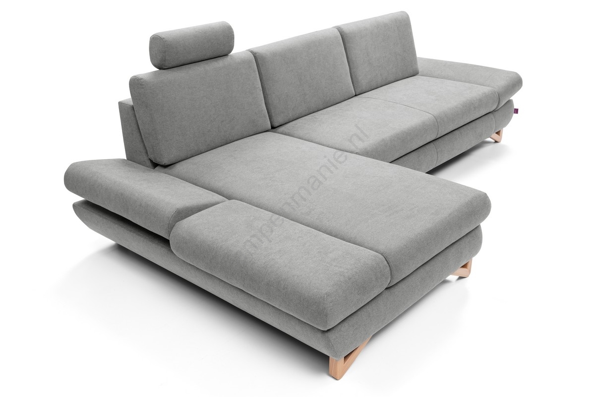 • Uitklapbare gestoffeerde L-hoekbank AVESTA met opbergruimte, rechts, grijs