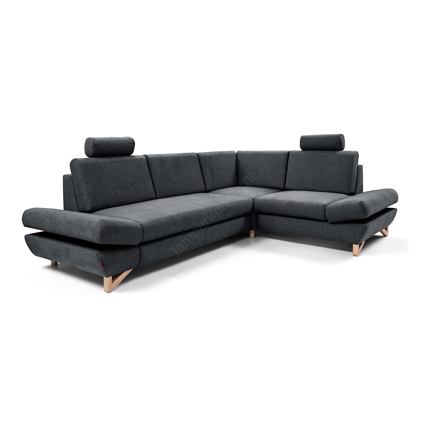 • Uitklapbare, gestoffeerde hoekbank met slaapfunctie en opbergruimte in L-vorm AVESTA antraciet