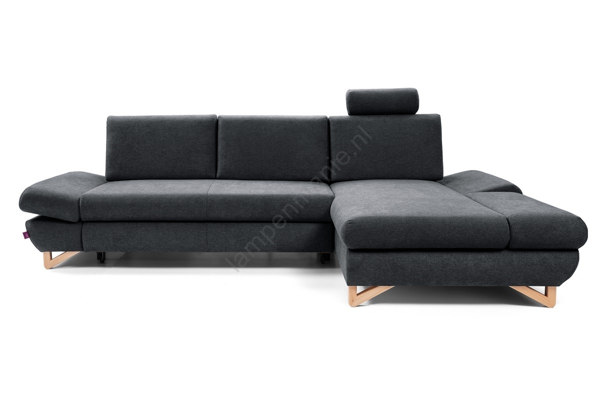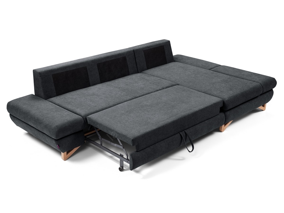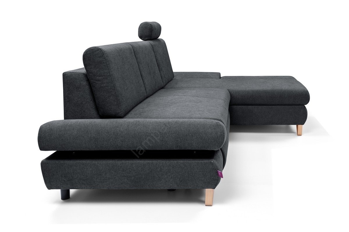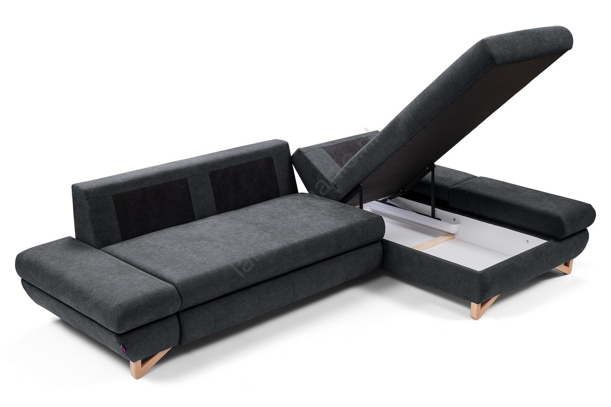 Uitschuifbare gestoffeerde L-vormige hoekbank AVESTA met opbergruimte, rechts, antraciet