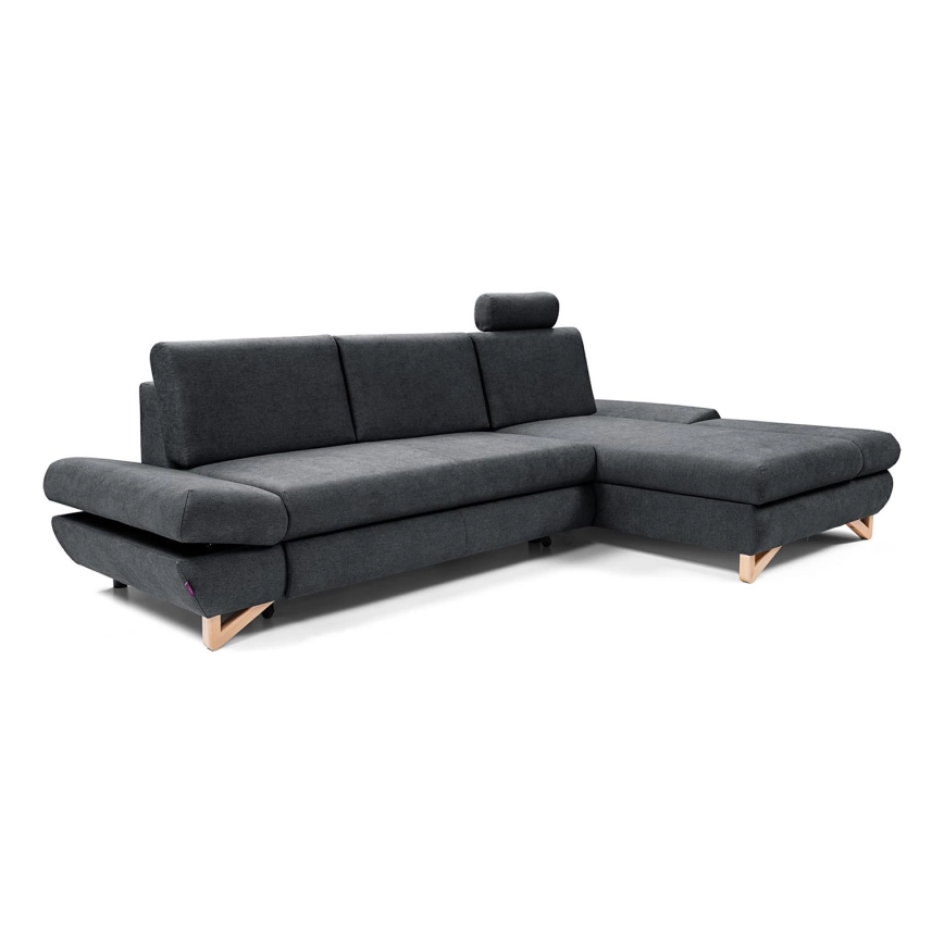 Uitschuifbare L‑vormige gestoffeerde hoekbank AVESTA met opbergruimte, rechts, antraciet