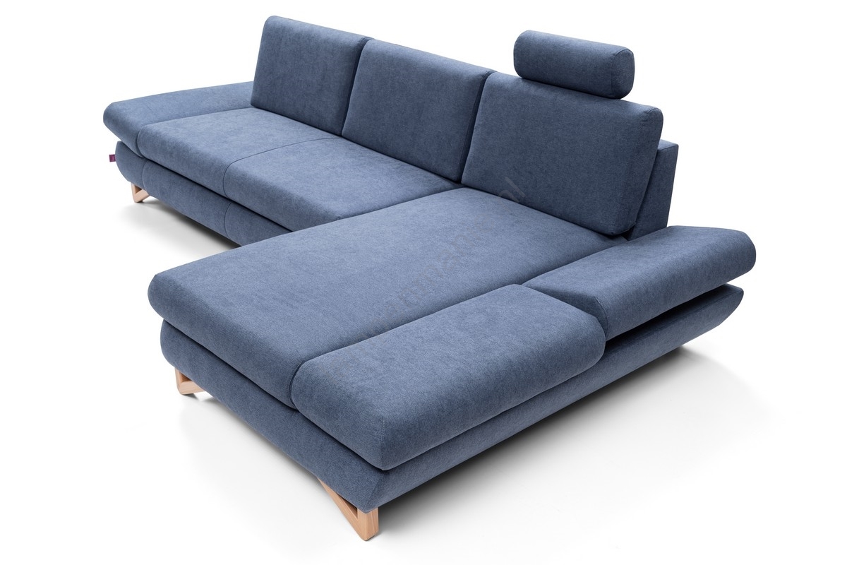 • Uitklapbare gestoffeerde hoekbank AVESTA, L-vormig, met opbergruimte, rechts, blauw