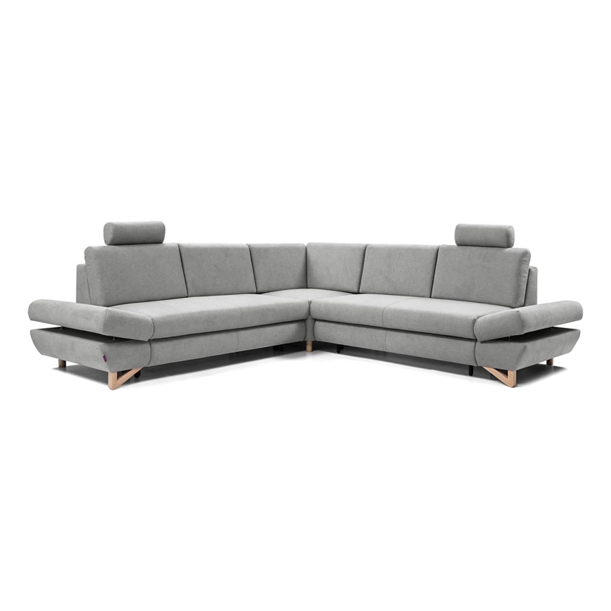 • Uitschuifbare gestoffeerde hoekbank in L‑vorm met opbergruimte AVESTA, grijs