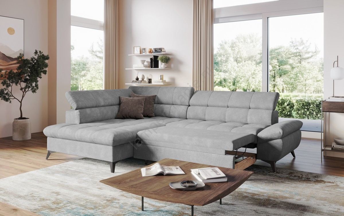 • Uitschuifbare hoekbank in L-vorm MARANO links grijs