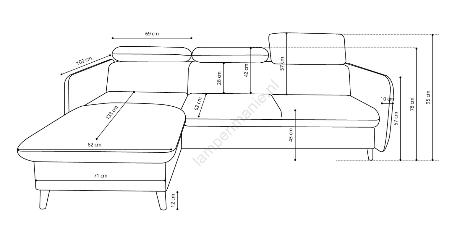 • De bank heeft 3 verstelbare hoofdsteunen.