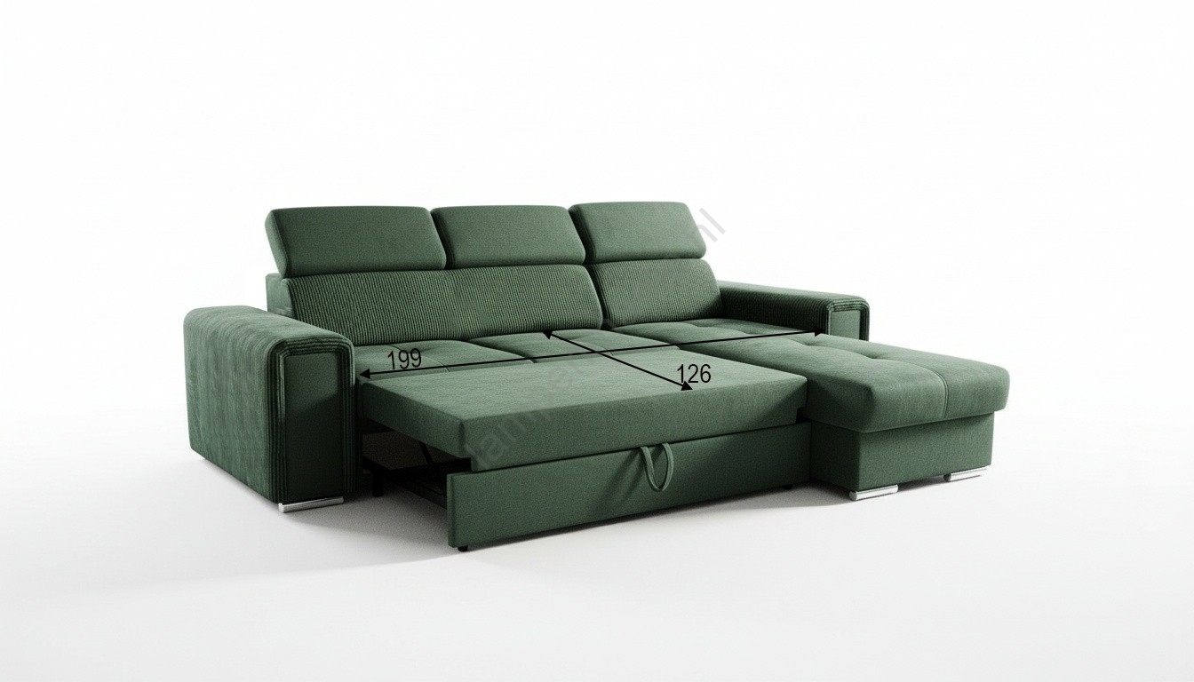 • Universele L-vormige hoekbank SALVADA met slaapfunctie en opbergruimte, groen