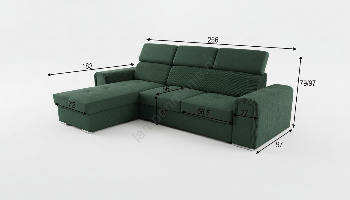 • De bank biedt 3 verstelbare hoofdsteunen met 5 standen.