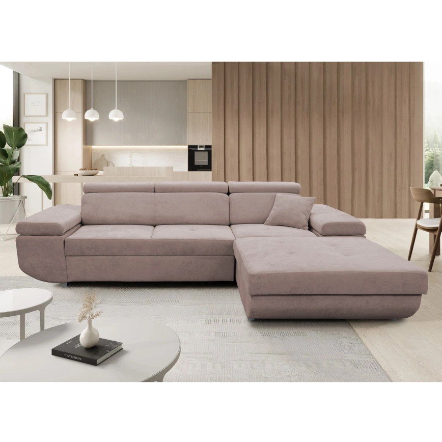 • L-vormige hoekbank CASTELO met slaapfunctie en opbergruimte, rechts, beige