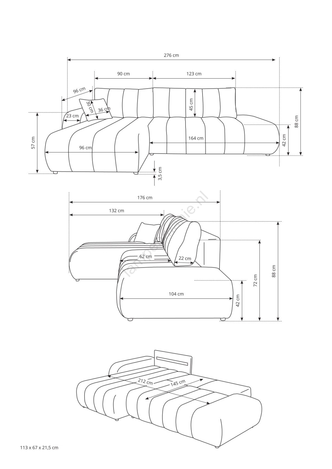• Doos nr. 2: 167 x 107 x 43 cm (48,5 kg).