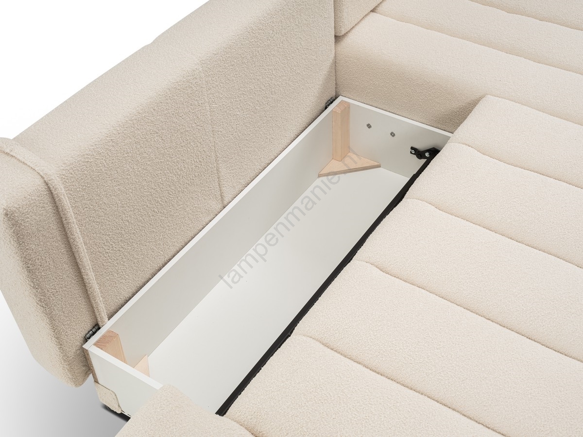 • De bank beschikt over ruime opbergruimte voor het opbergen van beddengoed en andere seizoensgebonden spullen.