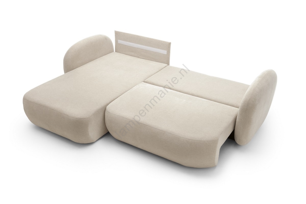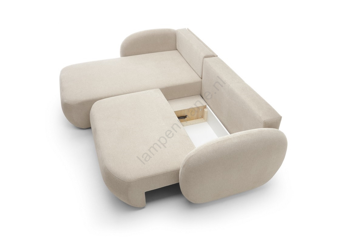 • OLBIA L-vormige hoekbank met slaapfunctie en opbergruimte, rechts, beige