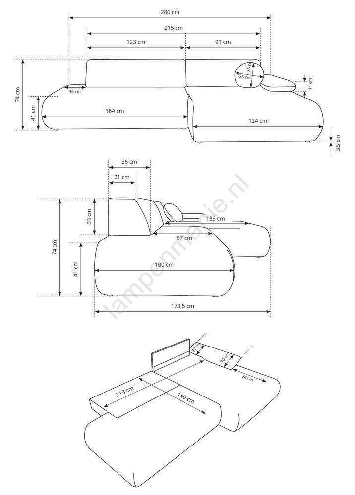 • De bank beschikt over een ruime opbergbox voor het opbergen van beddengoed en andere seizoensgebonden spullen.