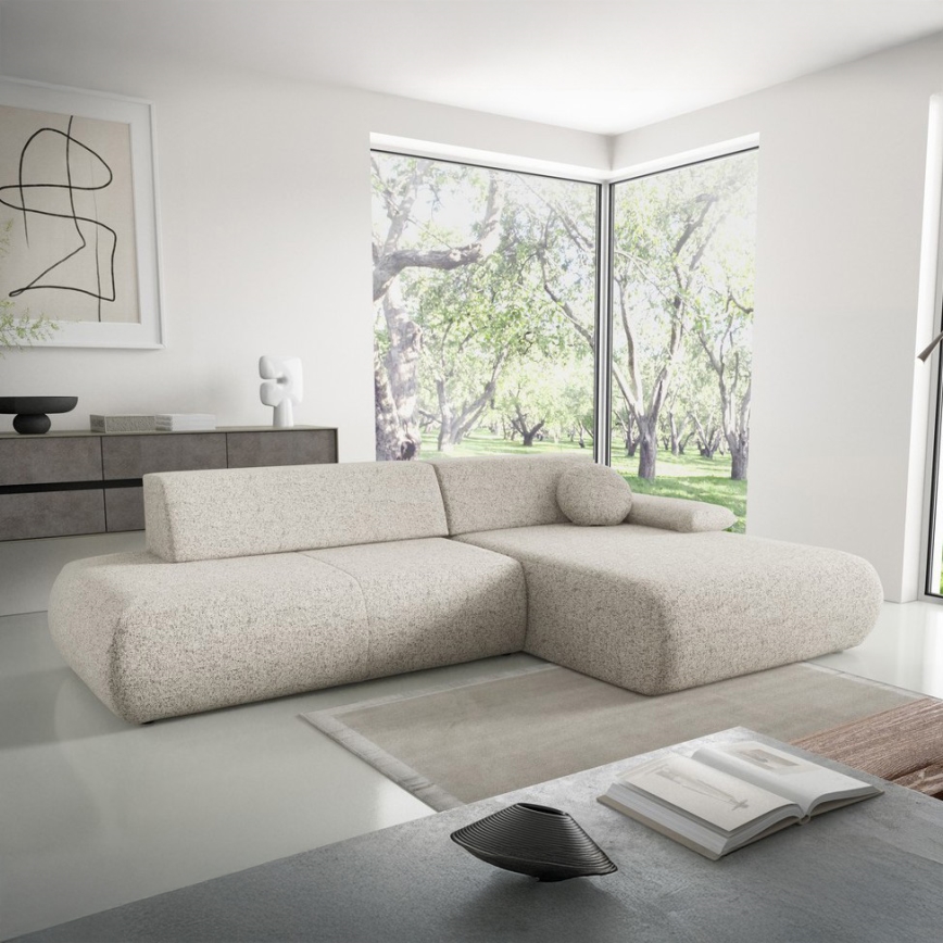 Uitschuifbare L-hoekbank PRATO met opbergruimte, hoek rechts, beige
