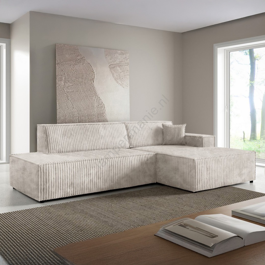 L-vormige hoekbank TERAMO met slaapfunctie, rechteropstelling, beige, met opbergruimte