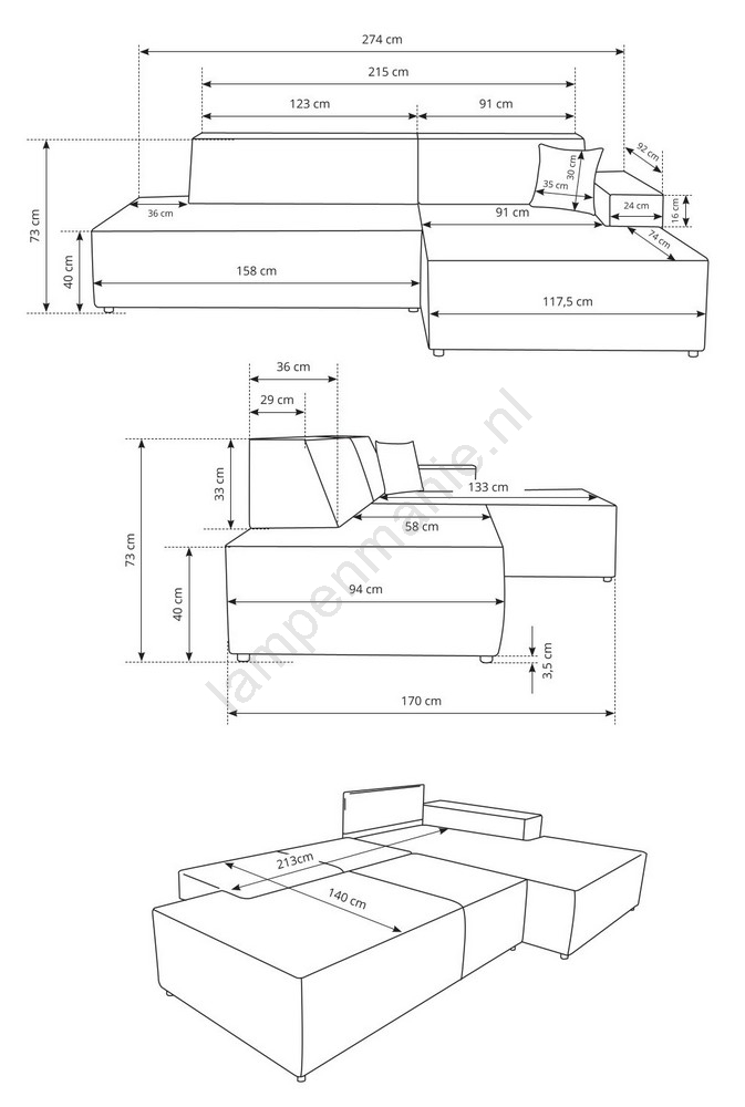 • De bank beschikt over een ruime opbergbox  voor het opbergen van beddengoed en andere seizoensgebonden spullen.