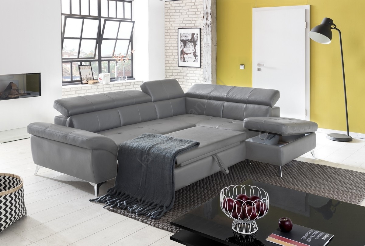 • Uitschuifbare leren hoekbank in L-vorm SALERNO II rechts, grijs
