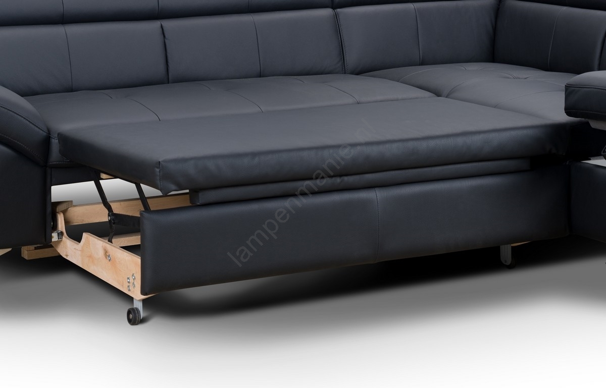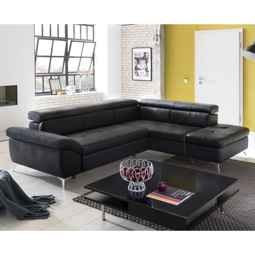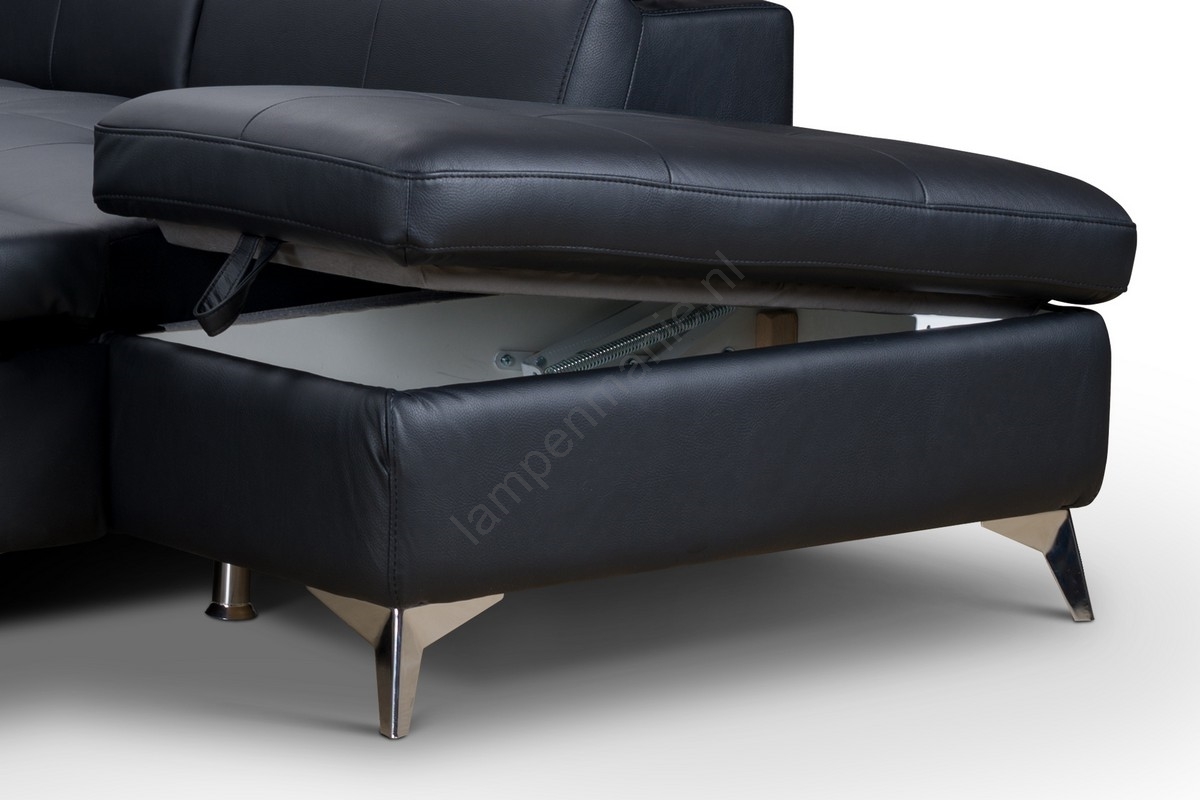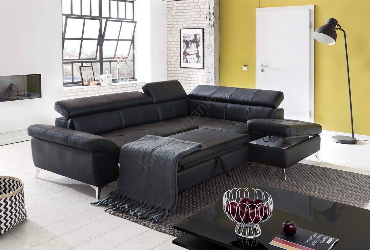 Uitschuifbare leren hoekbank in L-vorm SALERNO II rechts zwart