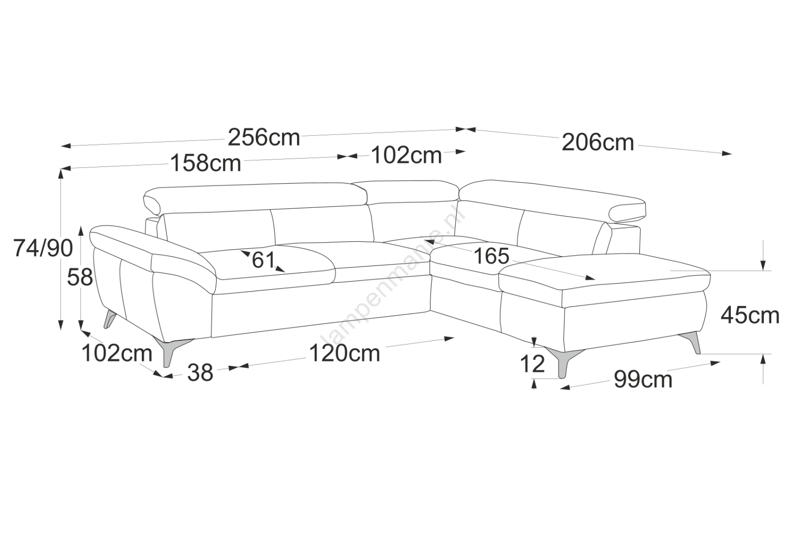 • De 12 cm hoge metalen poten geven een moderne uitstraling en zorgen voor stabiliteit.