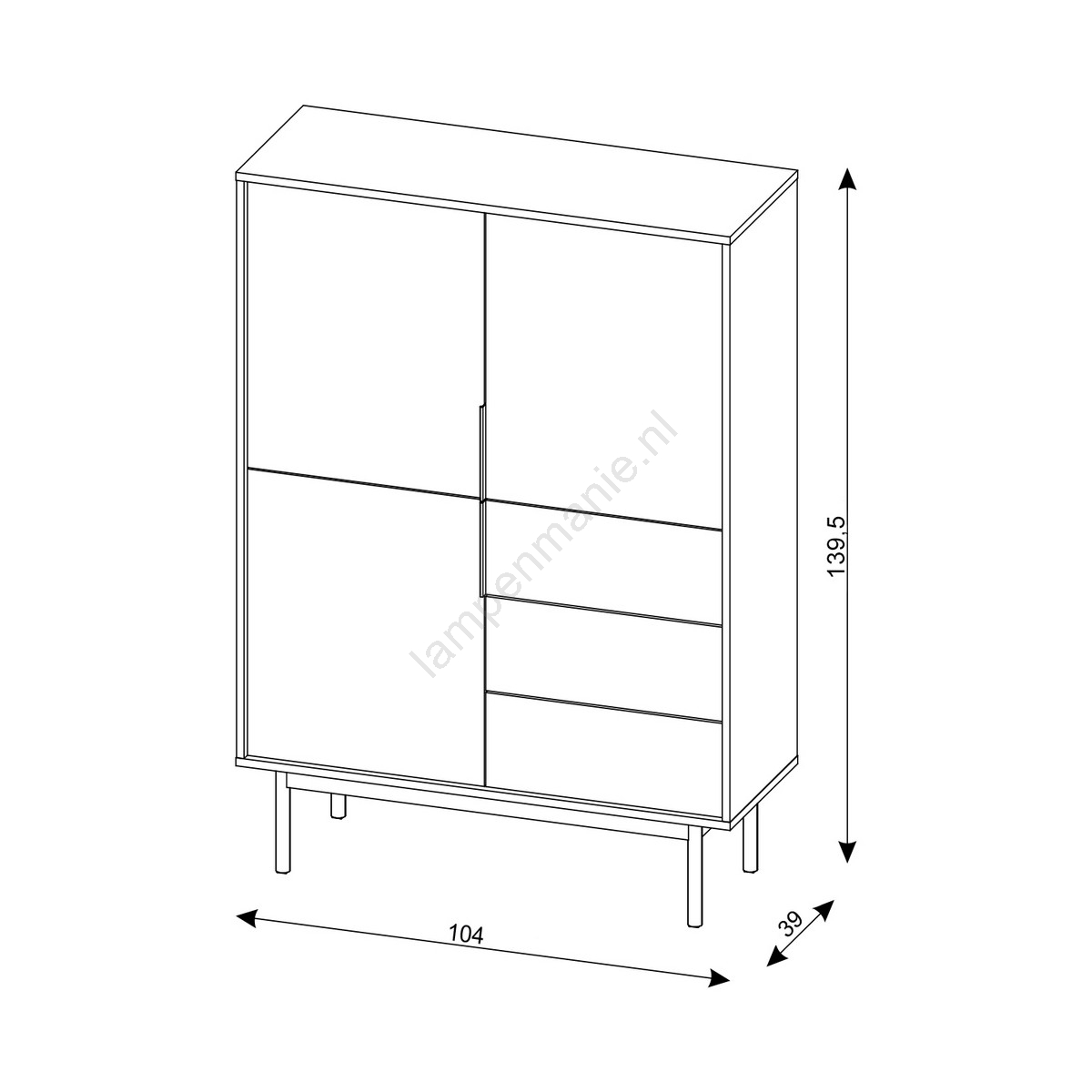 • Het heeft twee deurtjes aan de linkerkant en één deur en drie lades aan de rechterkant, voor overzichtelijke opbergruimte.