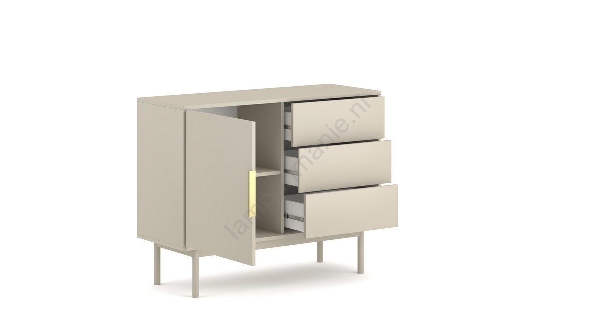 • Voorzien van één deur aan de linkerzijde en drie lades aan de rechterzijde, voor overzichtelijke opbergruimte.