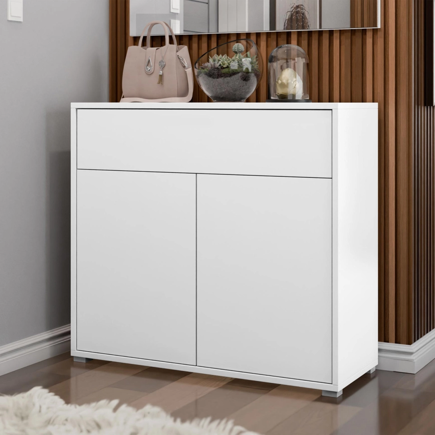 • De combinatie van één ruime lade en een tweedeurskast met legplanken biedt ideale opbergruimte voor het overzichtelijk opbergen van uw kleding, documenten en andere benodigdheden.