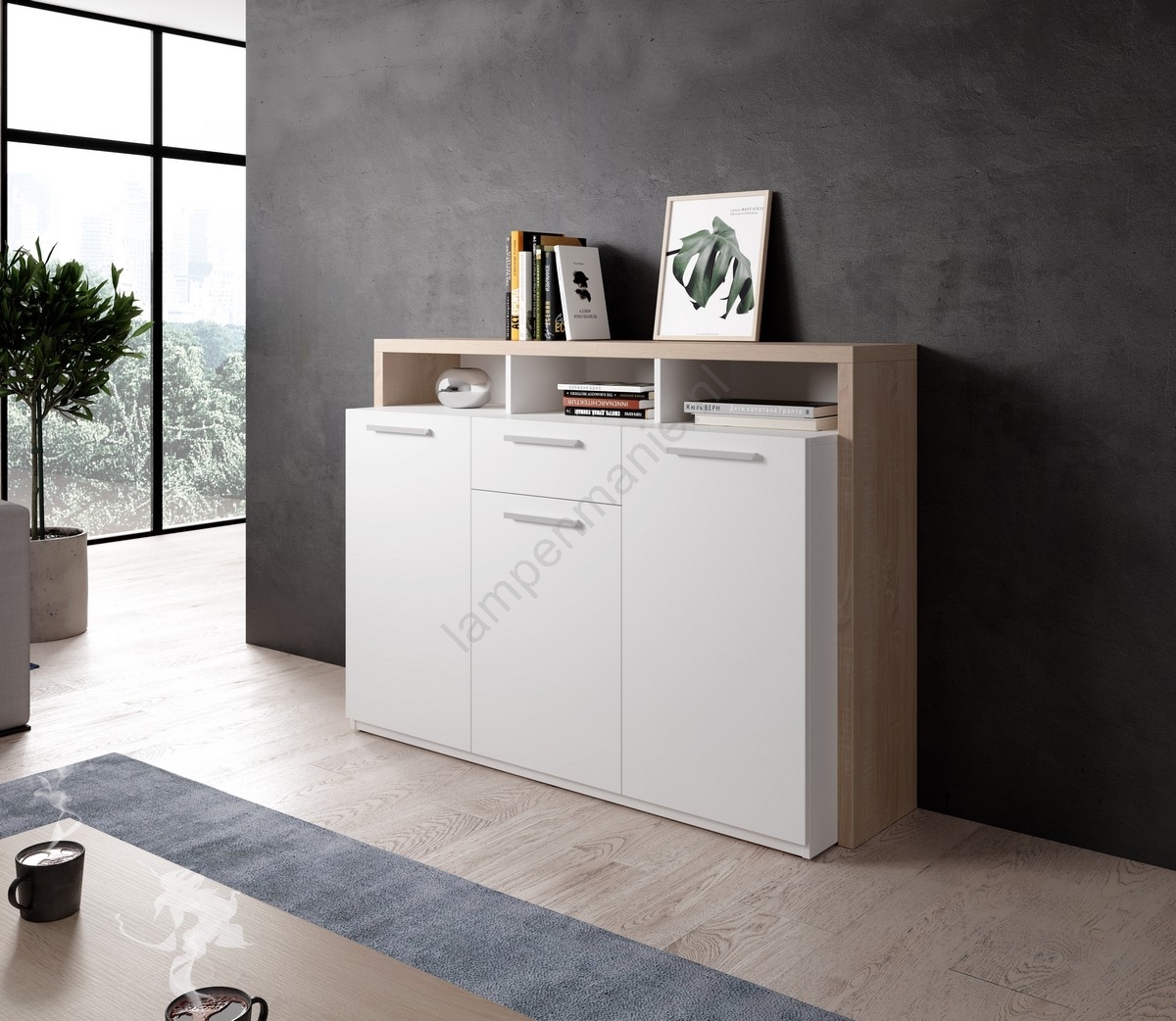 • Elegante grepen en strakke lijnen creëren een moderne uitstraling, perfect voor eigentijdse woonkamers.