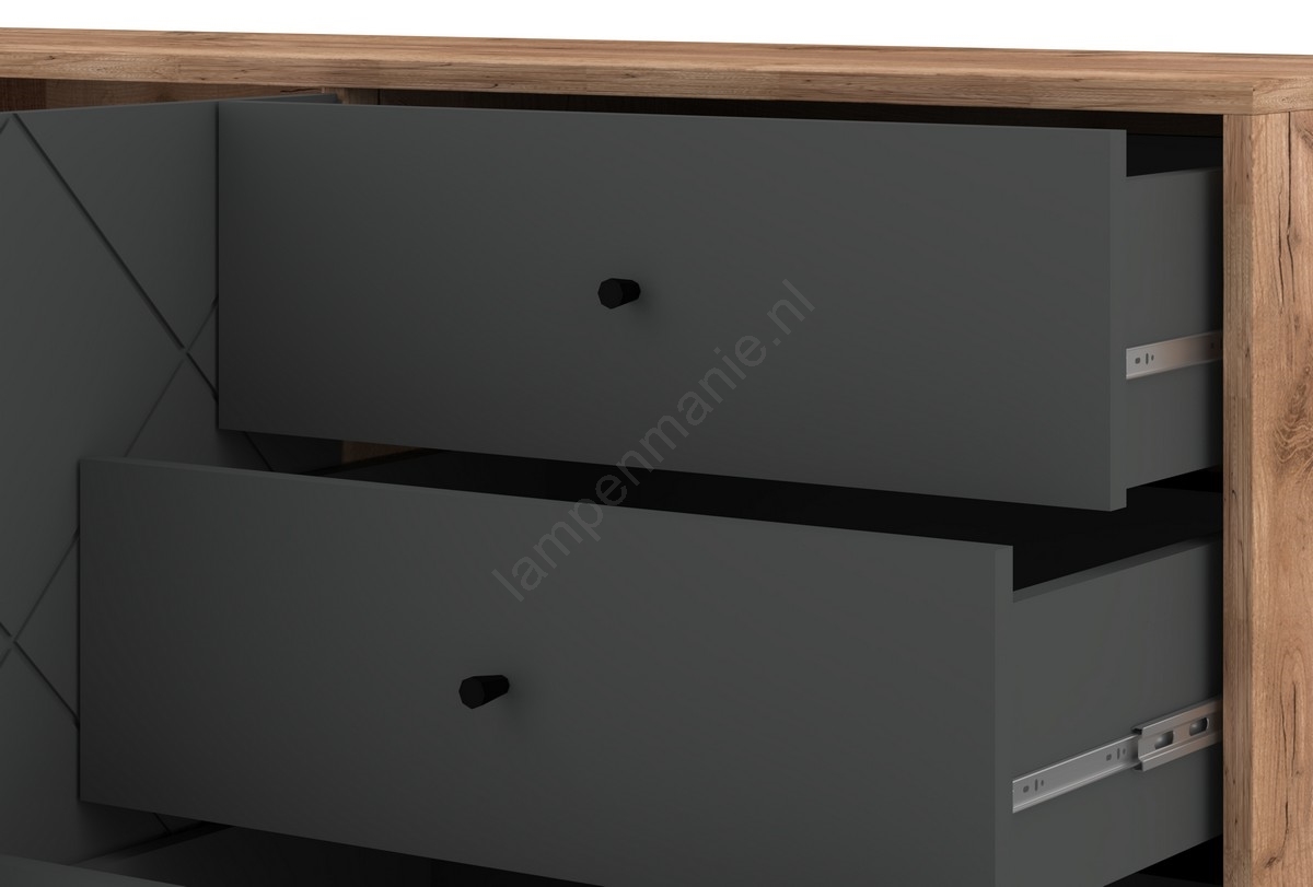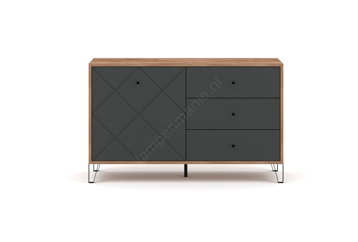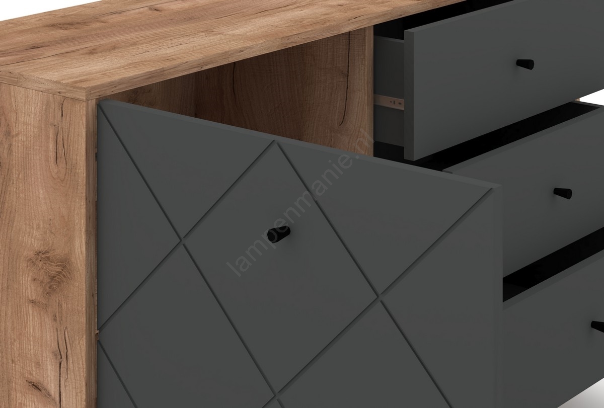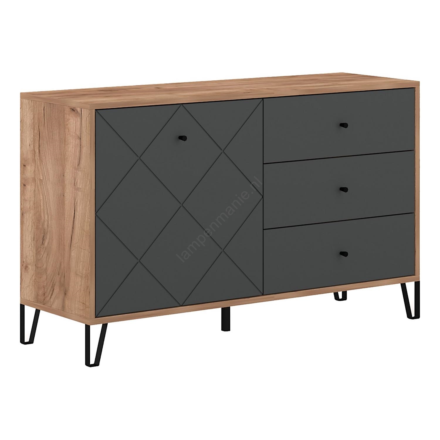 • Voorzien van één deur aan de linkerzijde en drie lades aan de rechterzijde voor overzichtelijke opbergruimte.