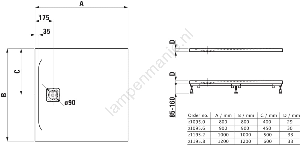 • Installatie-accessoires voor de douchebak en de sifon zijn niet inbegrepen.