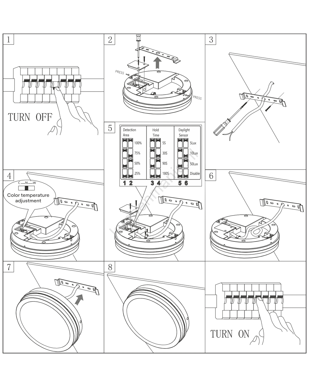 • Instelbare schemersensor: UIT; 5 - 50 lx.