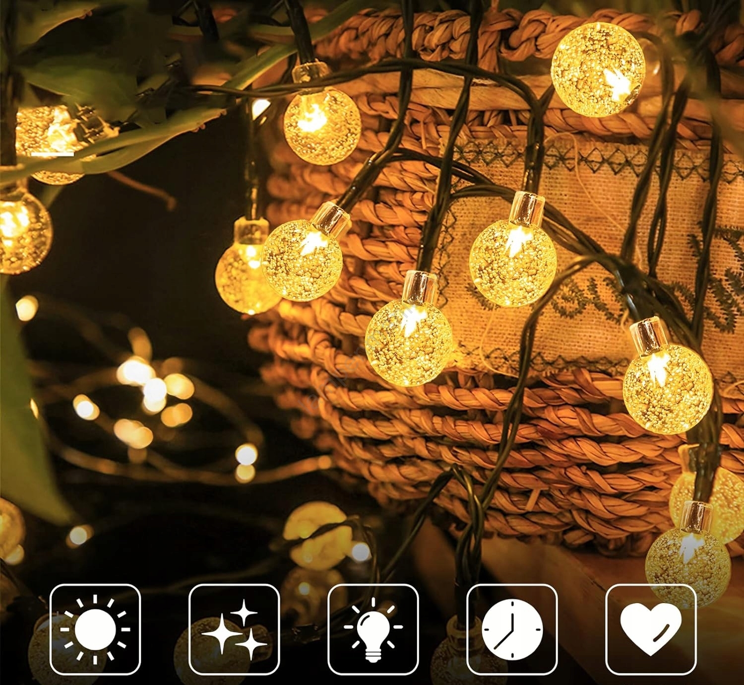 • Decoratieve lichtslinger op zonne-energie, perfect voor tuindecoratie.