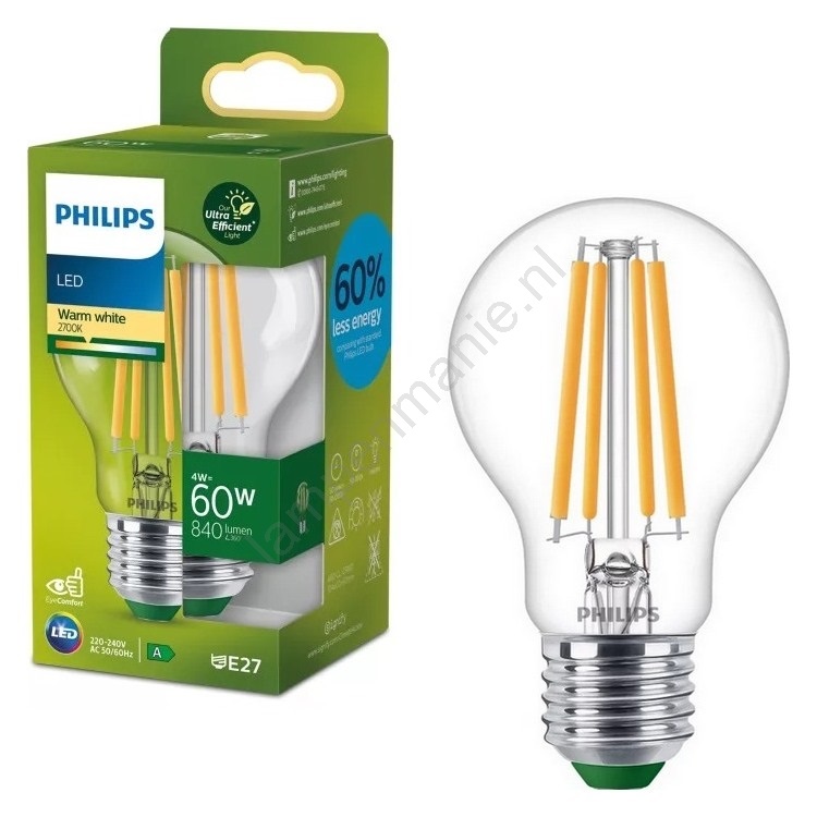LED-lamp ULTRAEFFICIENT VINTAGE Philips A60 E27/4W/230V 2700K Het hoogwaardige design zorgt voor een perfecte verlichting van uw interieur. De categorie E27 is gewijd aan lampen met dezelfde dop. In onze e-shop kunt u de kiezen uit lampen met traditionele gloeidraad of moderne LED-lampen, die energiezuiniger zijn en een langere levensduur hebben.