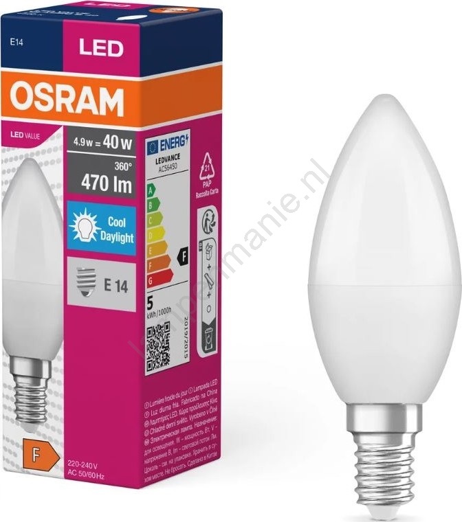 LED Lamp VALUE B40 E14/4,9W/230V 6500K - Osram Het hoogwaardige design zorgt voor een perfecte verlichting van uw interieur. De categorie E14 is gewijd aan lampen met dezelfde dop. In onze e-shop kunt u de kiezen uit lampen met traditionele gloeidraad of moderne LED-lampen, die energiezuiniger zijn en een langere levensduur hebben.