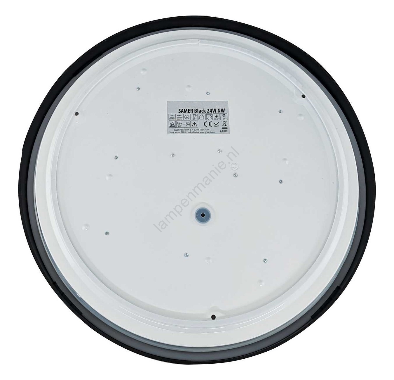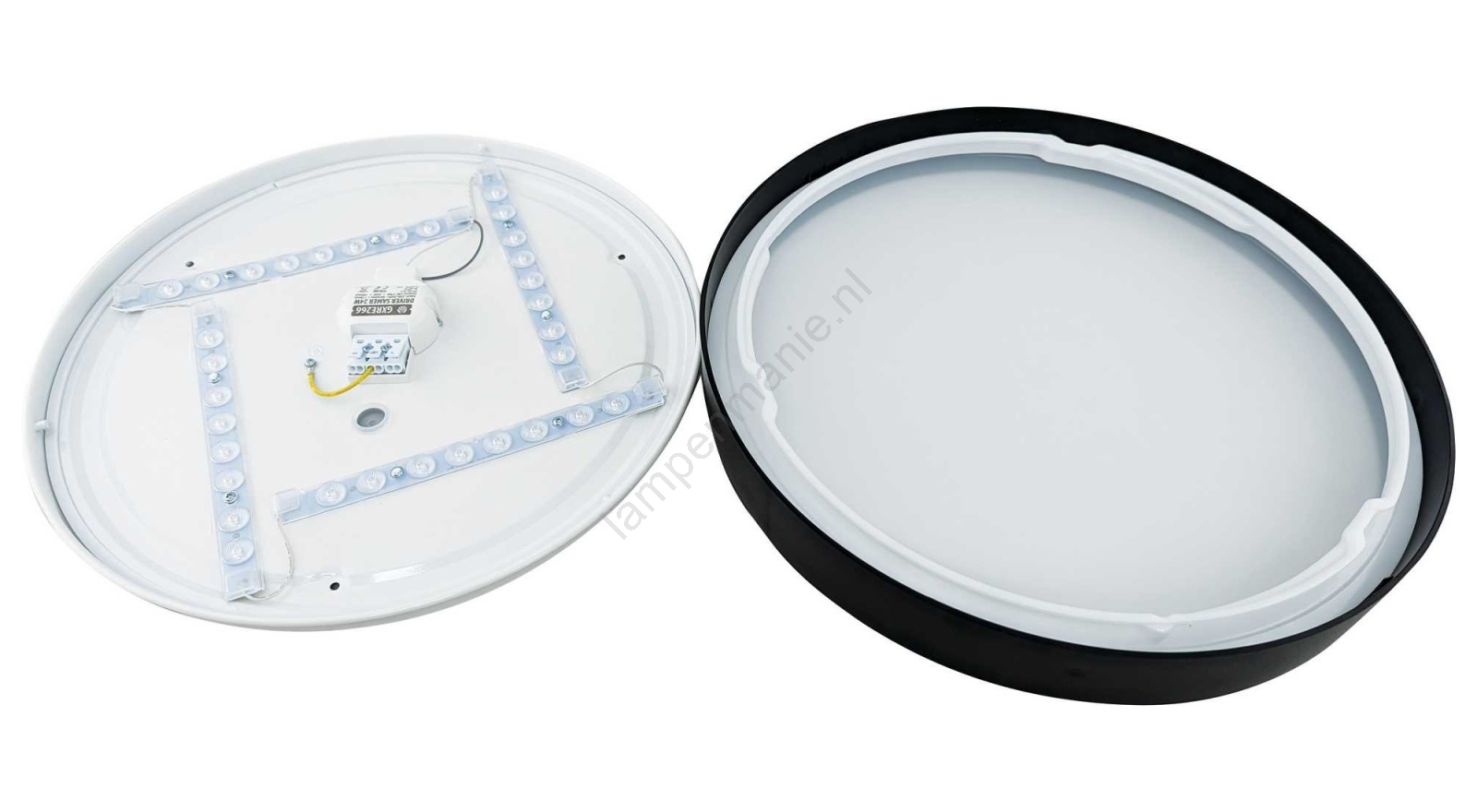• Het lamphuis bestaat uit een wit gelakte stalen plaat.