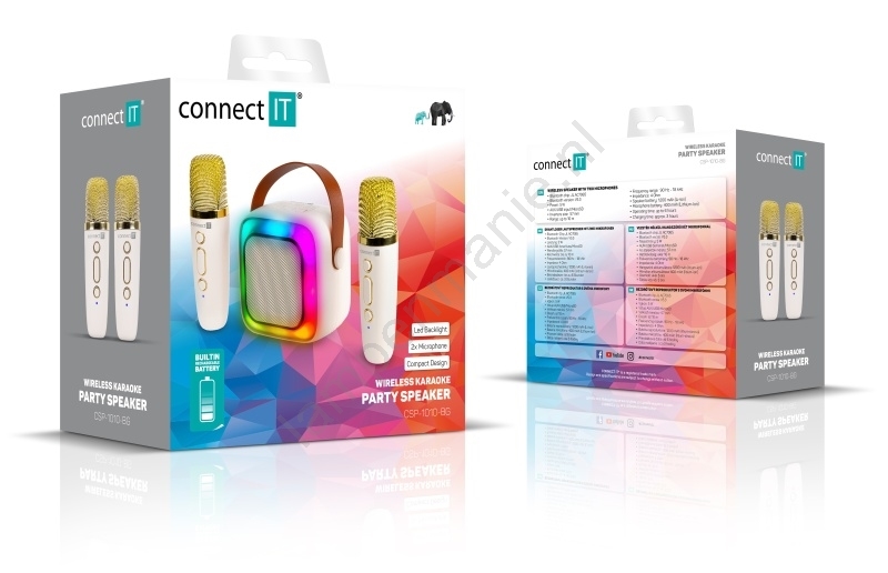 CONNECT IT CSP-1010-BG - LED RGB-luidspreker met 2 draadloze microfoons, 5 W / 1200 mAh + 2×400 mAh, crème/goud
