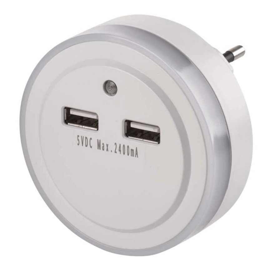 LED nachtlampje voor stopcontact met lichtsensor+2xUSB 3xLED/0,3W/230V