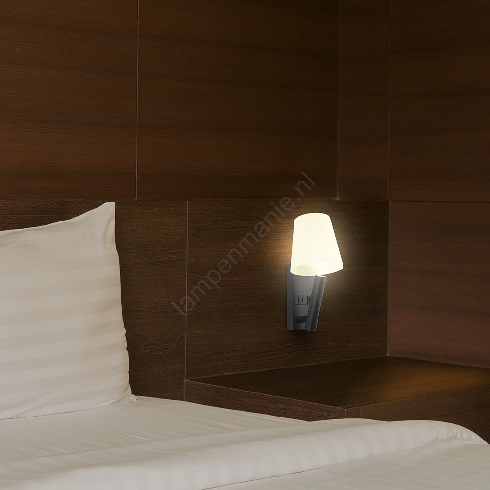 LED-wandlamp met USB-poort LED/2W/230V 3000K zwart/wit