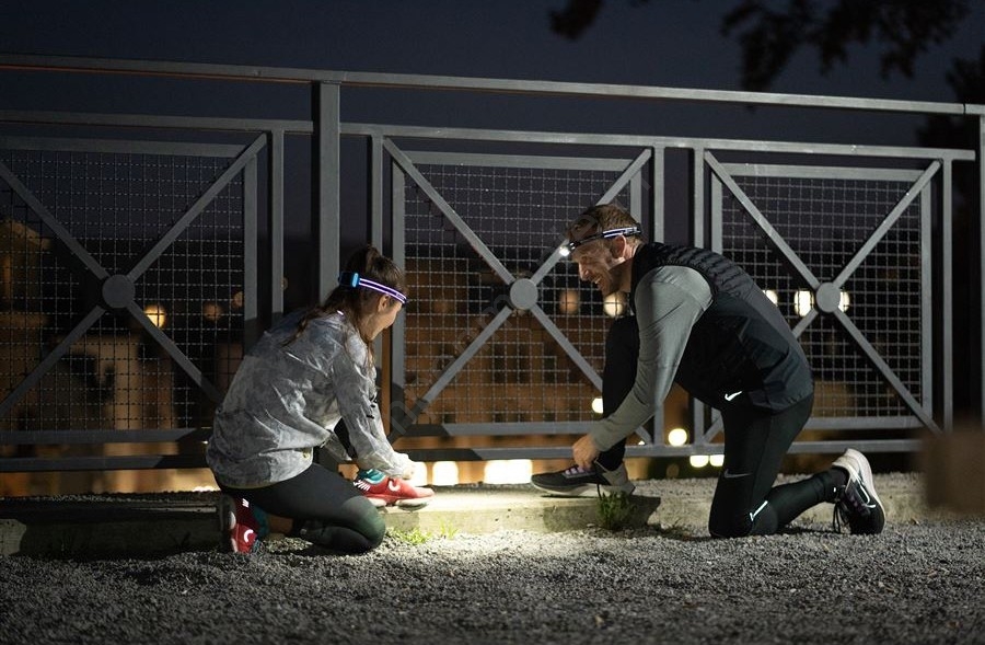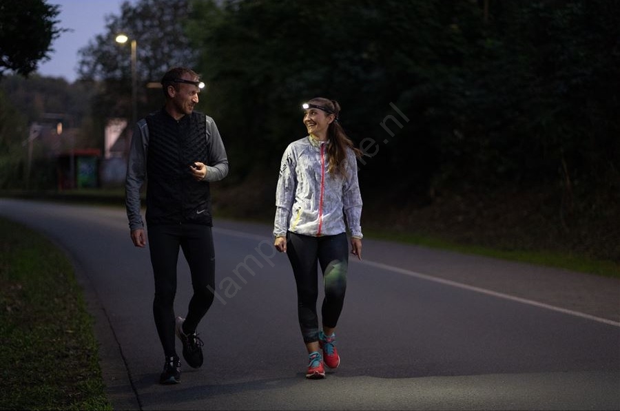 • De hoofdlamp kan ook op een borstband worden bevestigd, waardoor het verblinden van tegemoetkomende hardlopers of voetgangers wordt voorkomen.