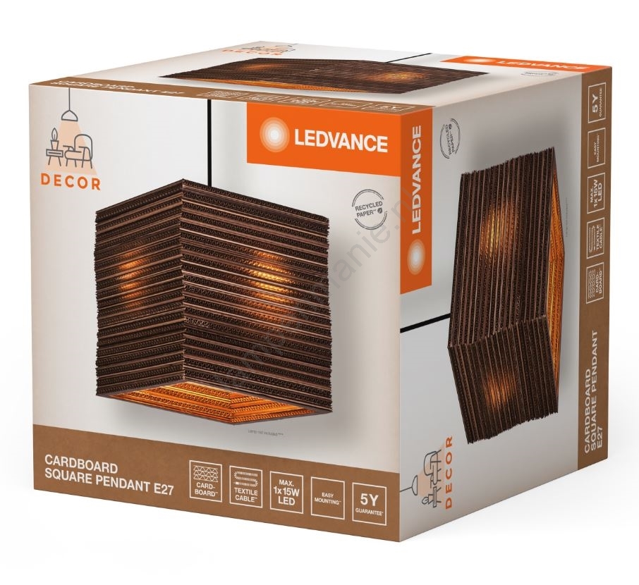Ledvance - Hanglamp aan een koord DECOR CARDBOARD 1xE27/15W/230V 25x25 cm kenmerkt een mooi en functioneel ontwerp.  Voor het licht is een lamp met E27 fitting geschikt. Hier kunt u andere lampen tegen voordelige prijzen kopen. U heeft een interessante aanwinst voor uw woning.